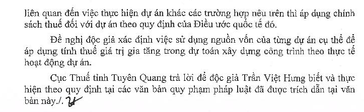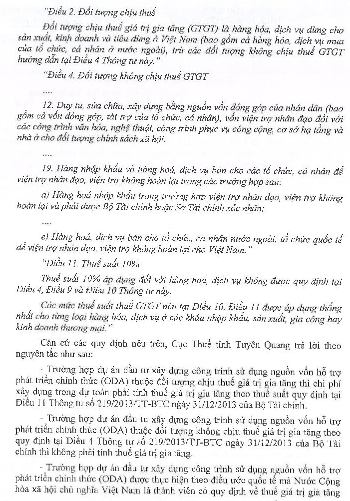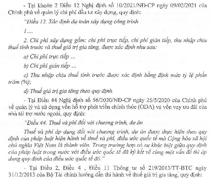 Vậy, xin hỏi đối với dự án đầu tư xây dựng công trình có sử dụng vốn ODA thì chi phí xây dựng trong dự toán có phải tính thêm 10% thuế giá trị gia tăng hay không?