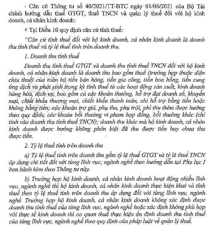 Hiện tại, tôi đang kinh doanh online và đã đăng ký hộ kinh doanh. Tôi chủ động kê khai thuế, nhưng có một số vướng mắc về khoản tiền phải kê khai đóng thuế. Tôi đã tham khảo trên các trang bán hàng, nhưng mỗi người ở mỗi địa phương đang được cán bộ thuế tư vấn kê khai các mục đóng thuế khác nhau.