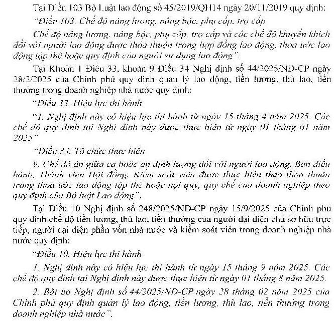 Kính gửi Bộ Tài Chính. Công ty chúng tôi với MST là 4300857681 có một số thắc mắc liên quan đến mức chi tiền ăn giữa ca, ăn trưa không chịu thuế TNCN mong BTC hướng dẫn giúp: Căn cứ theo điểm g.5, khoản 2, Điều 2 Thông tư số 111/2013/TT-BTC ngày 15 tháng 8 năm 2013 của Bộ Tài chính: “Không tính vào thu nhập chịu thuế đối với: Khoản tiền ăn giữa ca, ăn trưa do người sử dụng lao động tổ chức bữa ăn giữa ca, ăn trưa cho người lao động dưới các hình thức như trực tiếp nấu ăn, mua suất ăn, cấp phiếu ăn. Trường hợp người sử dụng lao động không tổ chức bữa ăn giữa ca, ăn trưa mà chi tiền cho người lao động thì không tính vào thu nhập chịu thuế của cá nhân nếu mức chi phù hợp với hướng dẫn của Bộ Lao động – Thương binh và Xã hội. Trường hợp mức chi cao hơn mức hướng dẫn của Bộ Lao động – Thương binh và Xã hội thì phần chi vượt mức phải tính vào thu nhập chịu thuế của cá nhân. Đối với các doanh nghiệp ngoài Nhà nước và các tổ chức khác, mức chi do thủ trưởng đơn vị thống nhất với chủ tịch công đoàn quyết định nhưng tối đa không vượt quá mức áp dụng đối với doanh nghiệp Nhà nước” Căn cứ theo khoản 4 Điều 22 Thông tư số 26/2016/TT-BLĐTBXH ngày 1 tháng 09 năm 2016 của Bộ Lao động - Thương binh và Xã hội quy định mức chi tiền ăn giữa ca cho người lao động tối đa không vượt quá 730.000 đồng/người/tháng. Tuy nhiên đến ngày 28/04/2025 Bộ nội vụ ban hành Thông tư số 003/2025/TT-BNV có hiệu lực thi hành ngày từ ngày 15/06/2025, đã bãi bỏ Thông tư số 26/2016/TT-BLĐTBXH và không đề cập đến mức chi tối đa của khoản tiền ăn giữa ca, ăn trưa. (Căn cứ theo Điều 19 của thông tư này) Vậy theo quy định hiện tại thì: + Mức chi tiền ăn giữa ca, ăn trưa không tính vào thu nhập chịu thuế TNCN đã không còn bị khống chế ở mức 730.000 đồng/người/tháng. + Mức chi tiền ăn giữa ca, ăn trưa không tính vào thu nhập chịu thuế TNCN là mức chi thực tế mà doanh nghiệp chi trả cho người lao động. Đơn vị chúng tôi đang hiểu theo nội dung trên. Như vậy có đúng theo quy định hiện tại hay không? Kính mong BTC giải đáp giúp Công ty chúng tôi vấn đề này để chúng tôi có thể thực hiện đúng quy định pháp luật về thuế.