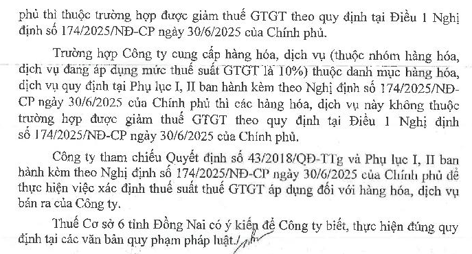 Hỏi:Kính gửi: Bộ Tài chính Chúng tôi, Công ty TNHH TM-SX Cơ Khí Cao Gia Phát MST: 3604011948. Chúng tôi muốn được giải đáp liên quan đến giảm thuế GTGT, căn cứ Nghị định 174/2025/NĐ-CP ngày 30/06/2025 của Chính phủ quy định giảm thuế giá trị gia tăng đối với các nhóm hàng hóa, dịch vụ đang áp dụng mức thuế suất 10%, trừ nhóm hàng hóa, dịch vụ được liệt kê ở Phụ lục I, II, III được ban hành kèm theo Nghị định. Hiện nay, Công ty chúng tôi đang sản xuất, gia công các mặt hàng thành phẩm từ sắt, thép tấm, thép không gỉ (inox). Vậy đối với hàng hóa đã làm ra thành phẩm từ sắt, thép tấm, thép không gì của Công ty chúng tôi thuộc đối tượng áp dụng mức thuế suất thuế GTGT 10% hay được áp dụng mức thuế suất thuế GTGT 8% theo Nghị định số 174/2025/NĐ-CP ngày 30/06/2025.