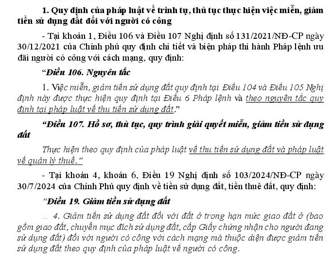 Tôi xin hỏi, tôi có thuộc đối tượng được giảm tiền sử dụng đất theo chính sách người có công không? Nếu không thuộc thì căn cứ theo quy định nào?