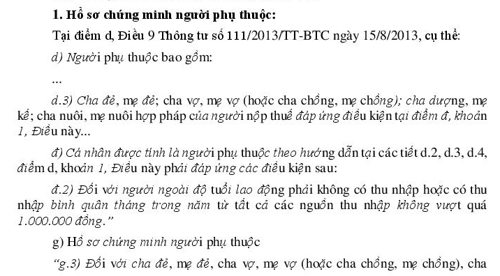 Giấy tờ chứng minh người phụ thuộc không có thu nhập hoặc thu nhập dưới 1.000.000đ/tháng
