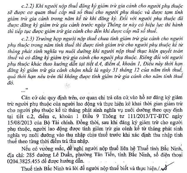 Người lao động trong năm 2025 chỉ làm tại công ty tôi. Tôi muốn hỏi 2 trường hợp sau: 1. NLĐ có con sinh vào tháng 9 năm 2025. Tuy nhiên sang tháng 10.2025 NLĐ mới gửi hồ sơ xin đăng ký NPT giảm trừ gia cảnh. Vậy xin hỏi sang tháng 10 khi công ty đăng ký MST NPT cho NLĐ thì công ty có thể để thời gian giảm trừ bắt đầu từ tháng 9.2025 để sau này khi quyết toán thuế TNCN sẽ được tính lại số NPT giảm trừ gia cảnh trong năm 2025 từ tháng 9 hay không. Hay phải để thời giam giảm trừ bắt đầu từ tháng 10.2025 theo tờ khai đăng ký NPT. 2. Công ty tôi đang trả lương vào tháng kế tiếp của kỳ tính lương. Ví dụ lương tháng 1 sẽ được trả vào ngày 5 tháng 2. Vậy trong trường hợp NLĐ có NPT đăng ký thời điểm giảm trừ từ tháng 2.2025 thì sẽ giảm trừ khi tính lương tháng 1 (trả vào tháng 2) hay tính lương tháng 2 (trả vào tháng 3) ạ Xin cảm ơn.