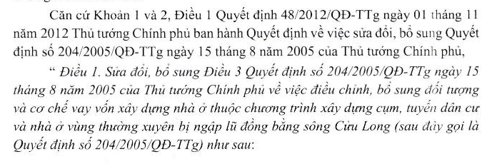Năm 2004, gia đình tôi được bố trí nền đất Khu dân cư vượt lũ theo Quyết định số 105/2002/QĐ-TTg ngày 02/08/2002 của Thủ tướng Chính phủ.