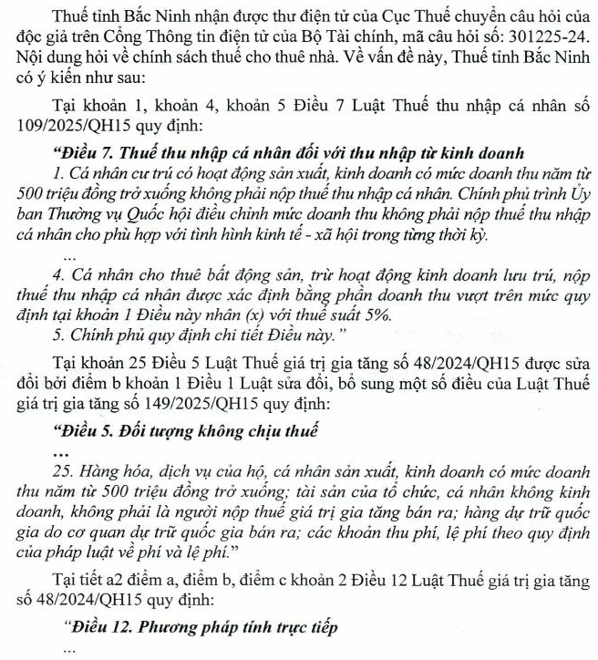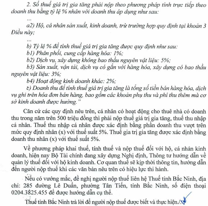 Kính gửi bộ tài chính. Công ty tôi có thuê nhà của cá nhân, theo hợp đồng thì công ty sẽ kê khai thay cá nhân. Giá trị thuê 1 năm là 540tr. Vậy tôi sẽ tính thuế TNCN và thuế GTGT phải nộp như thế nào, phần thu nhập không chịu thuế là 500tr sẽ được trừ khi tính thuế TNCN và GTGT hay chỉ được trừ khi tính thuế TNCN thôi. Thêm nữa, trong trường hợp 1 năm cá nhân đó cho nhiều công ty thuê, vậy phần thu nhập không chịu thuế 500tr sẽ được tính như thế nào cho các công ty kê khai thay. Kính mong cơ quan giải đáp